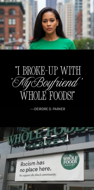 When I broke-up with my boyfriend, Whole Foods it wasn't over the macaroni & cheese or two-bite brownies! For nearly two decades, I walked through the doors of Whole Foods Market as a loyal customer, believing in the company's values of community, equality & respect. But that trust was shattered in a single afternoon when I attempted to make a routine product exchange for $17.94 accompanied with a valid receipt, dated well within the company's 90-day return policy at the now closed Broadway Madison location in Seattle, WA when I encountered two Whole Foods employees: racist Caucasian "Whole Foods 'KAREN'" and African American "Whole Foods 'BLACK KAREN'" who chose not to "do the right thing," but assimilate with Whole Foods' discriminatory culture.